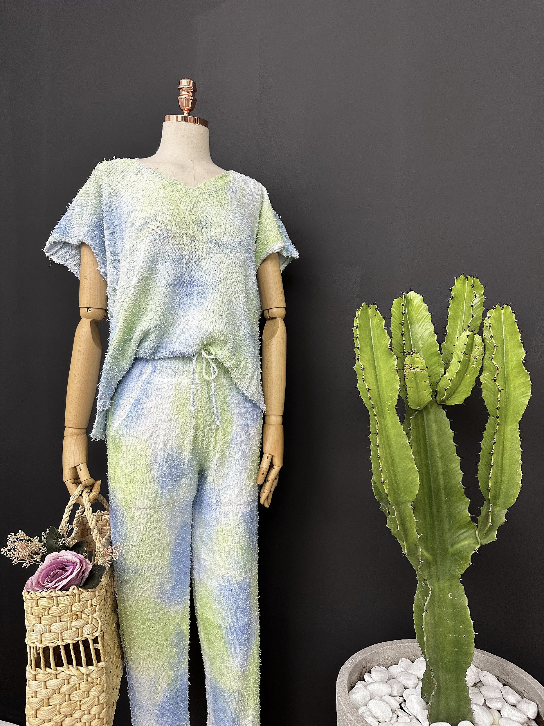 O Conjunto Tie Dye é uma escolha moderna e vibrante.Nosso modelinho e todo em fabricação artesanal,agergando um toque todo especial com essa cor que esta super em alta.Com padrões coloridos típicos do tie-dye, oferece um visual descontraído e cheio de energia. Confeccionado em tecidos confortáveis, é perfeito para as atividades diárias, proporcionando estilo e personalidade.Calça estilo jogger com bolsos laterias,um laço na parte da cintuira que da todo um charme a peça.Ablusa bem soltinha com magas bem descontraidas para deixar o look ainda versátil.