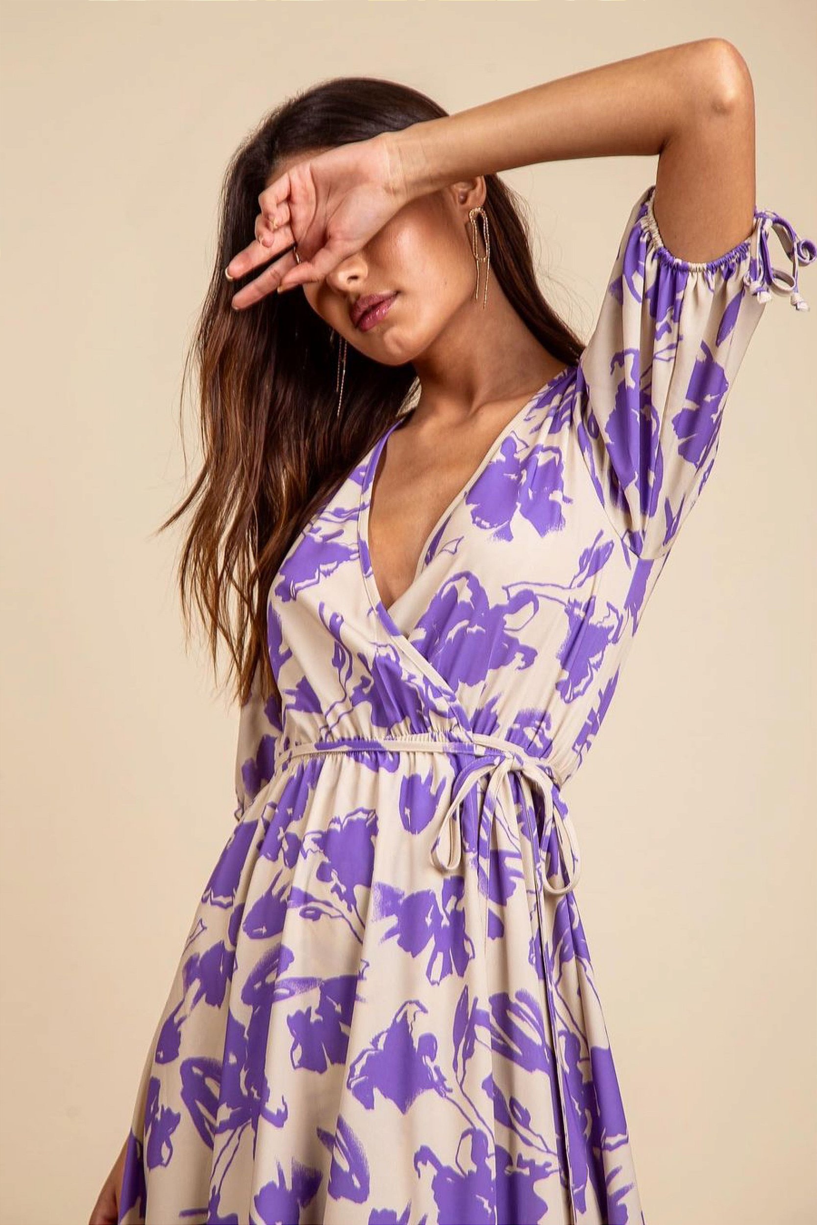 Tem um leve elástico e um laçinho nas mangas e na cintura